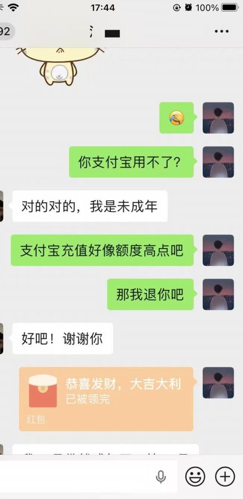 下面这个是一位客户未成年,那没办法用支付宝在供货站充值,然后他没办法用这些渠道充值,他当时也不知道怎么办,毕竟是他的原因,因为是他自己未成年没办法注册支付宝的,我看到后当时没有犹豫就主动提出退款给他了。